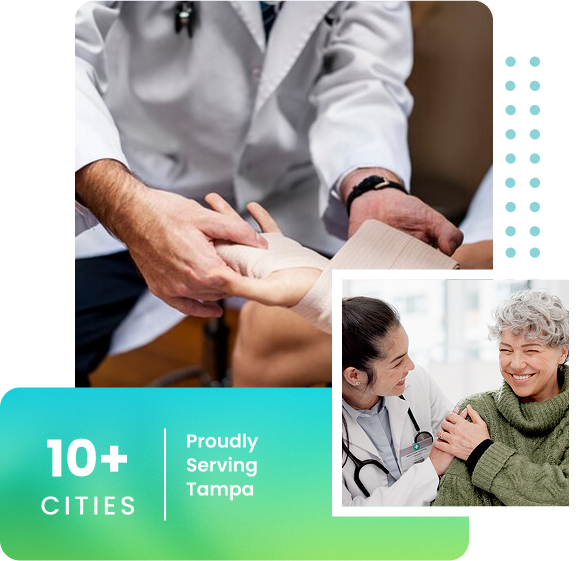 Our team serves patients within a 50-mile radius of Tampa, offering both in-clinic and mobile advanced wound care. Whether at home or in a facility, we provide reliable support for patients with complex healing needs.