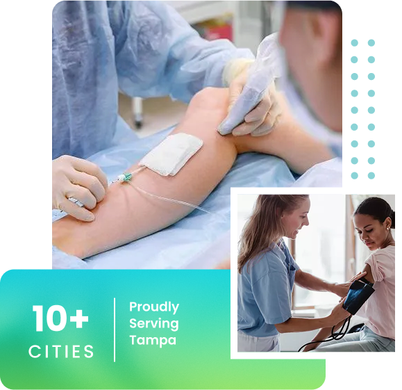Our diabetic wound care services are available throughout Tampa and within a 50-mile radius. Whether at home, in a care facility, or in our clinic, we bring expert care to you when and where it matters most.
